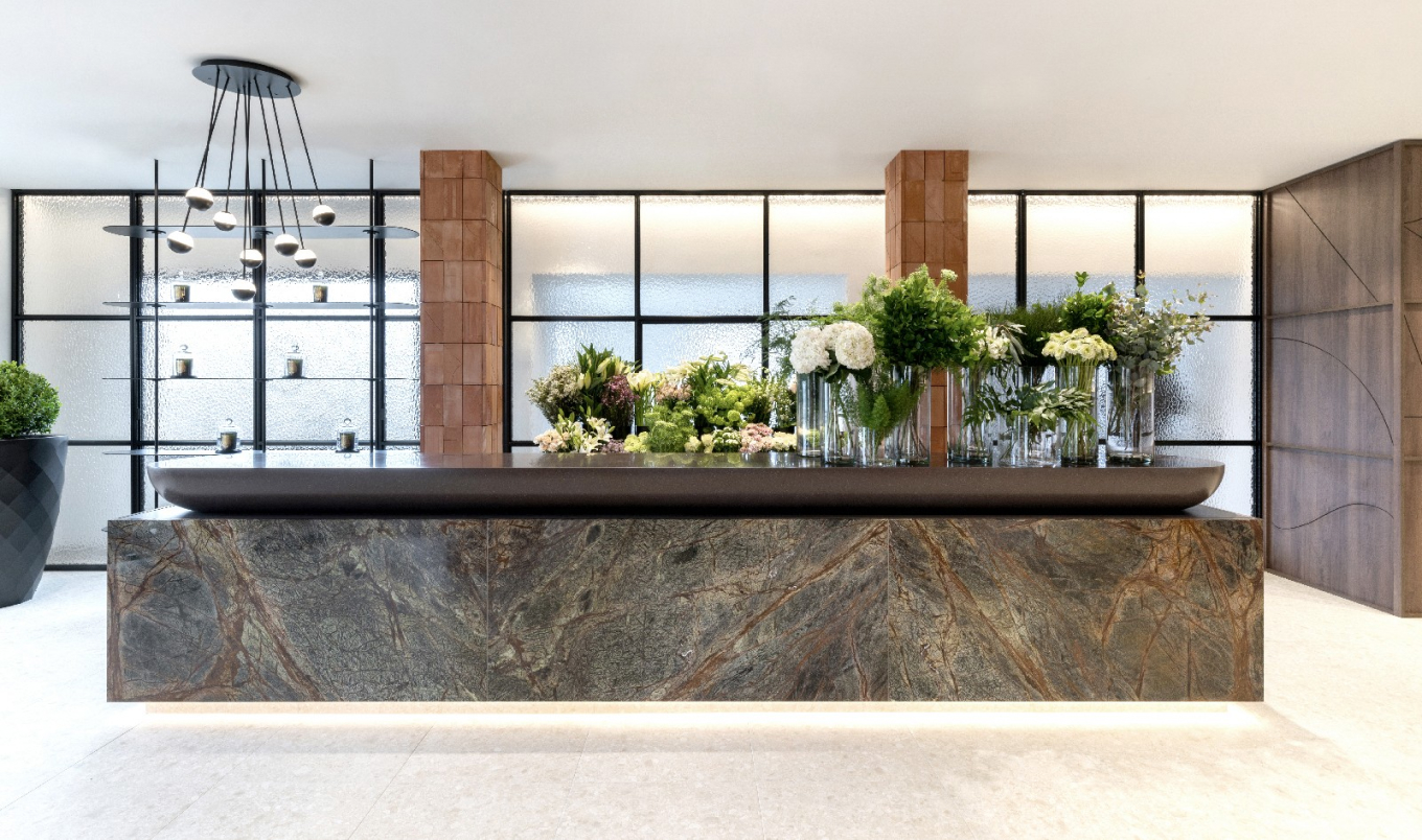 El espacio esta dividido en dos importantes áreas, una primera donde se ha generado un concepto de espacio estilo galería donde se presenta a los clientes los arreglos florales y una selección de elementos decorativos, y una segunda en la que se ha concebido el taller floral.
